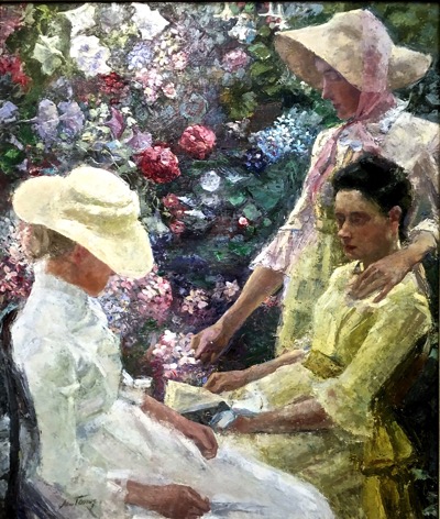 They contrast, of course, and not only because of the season, with the three ladies in Jan Toorop's delicious Trio fleuri (1885), with their sunbonnets and light frocks. Reminding me that summer does exist in these countries, even in Lapland I suppose.